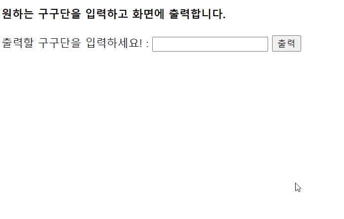 출력할 구구단을 입력하세요! : <input type="text" id = "dan">