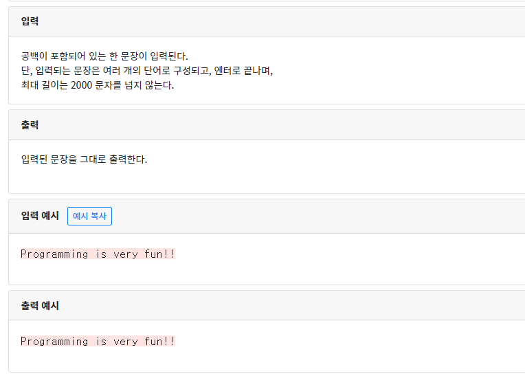 - 문장 1개 입력받아 그대로 출력하기