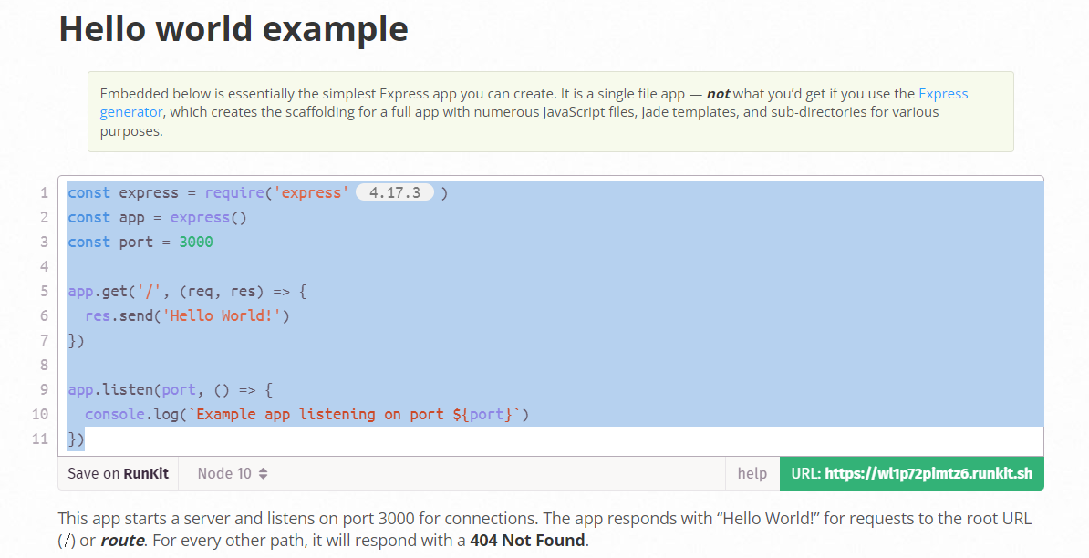 express 홈페이지에서 코드 복붙 할게요!