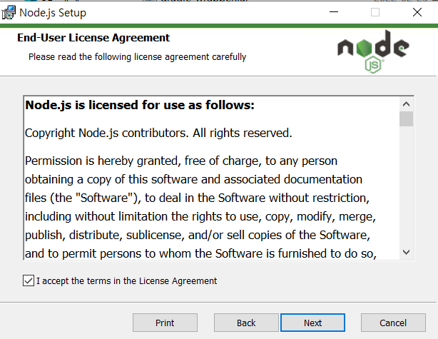 설치에 앞서 PC에 node.js 프로그램이 설치되어 있는지 확인해야 한다.