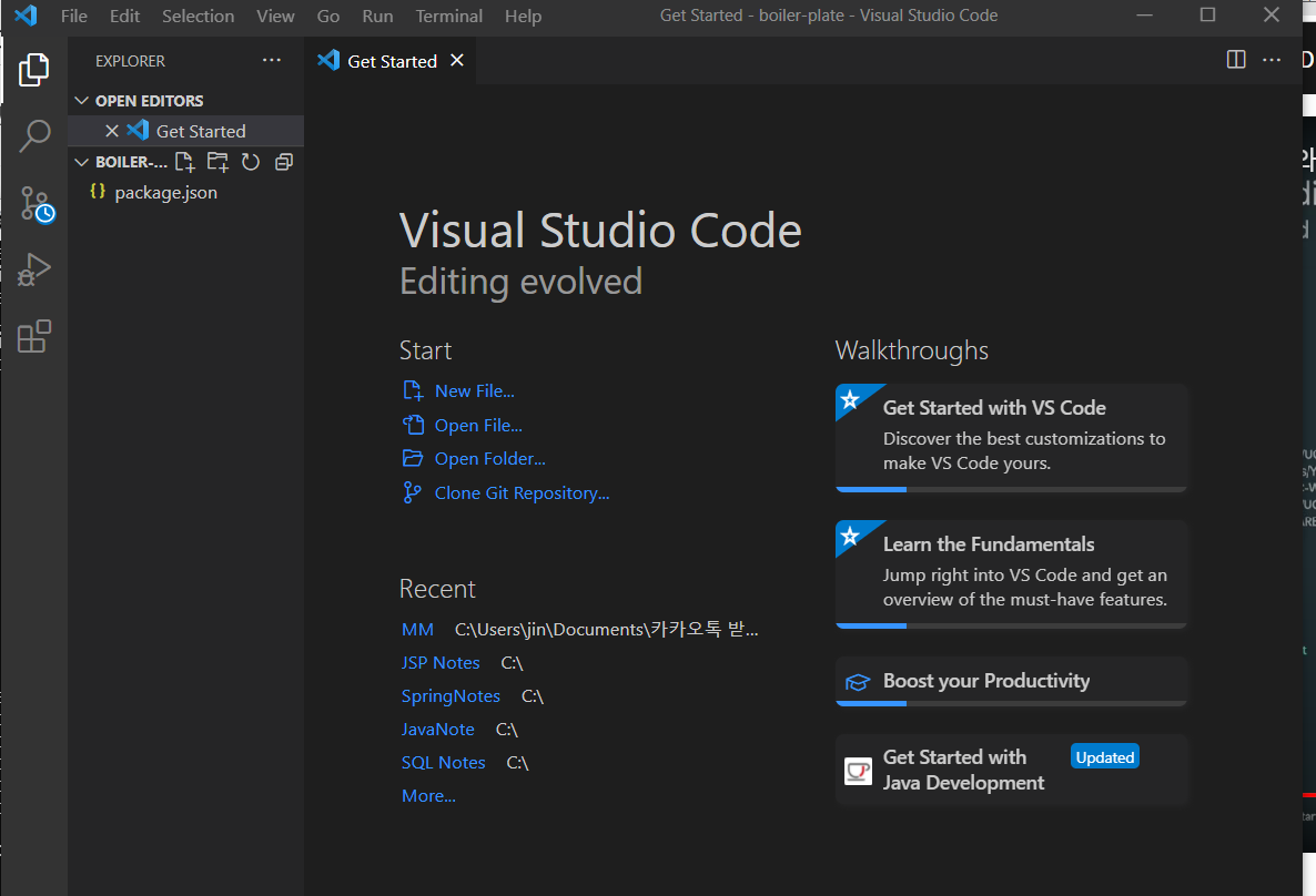 생성한 폴더를 Visual Studio Code에서 import 하면 된다.