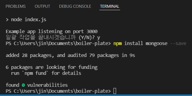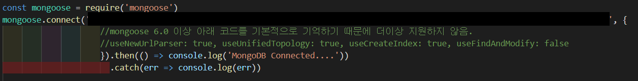 강의는 mongoose 4.0 버전이라 오류가 출력됐다ㅠㅠ