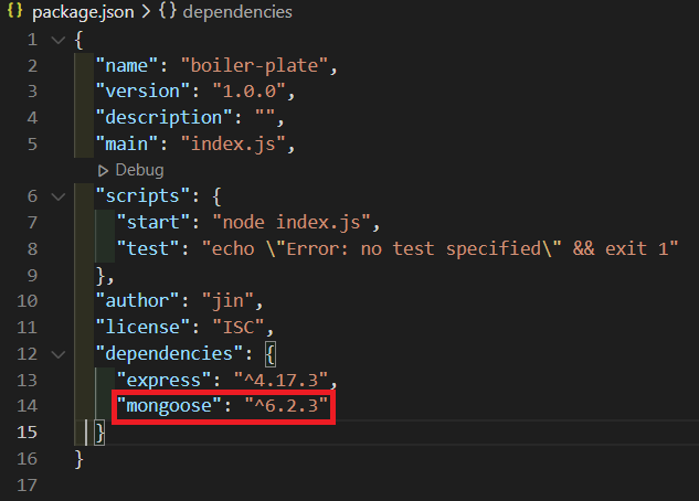 설치가 완료되면 package.json 파일에서 확인할 수 있다.