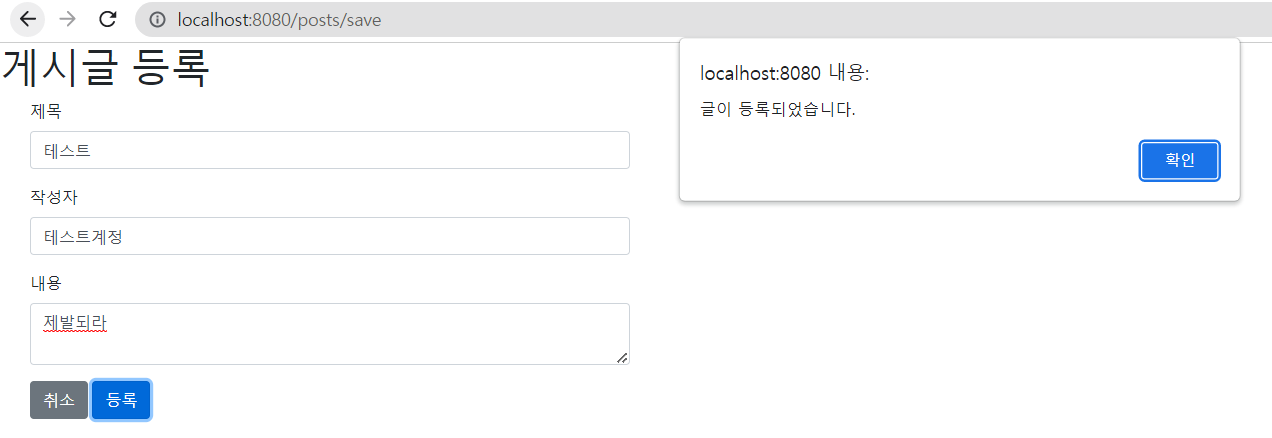 등록 기능이 정상적으로 작동하는 걸 확인할 수 있다!