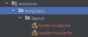 디렉토리안에 footer.mustache, header.mustache 파일 생성