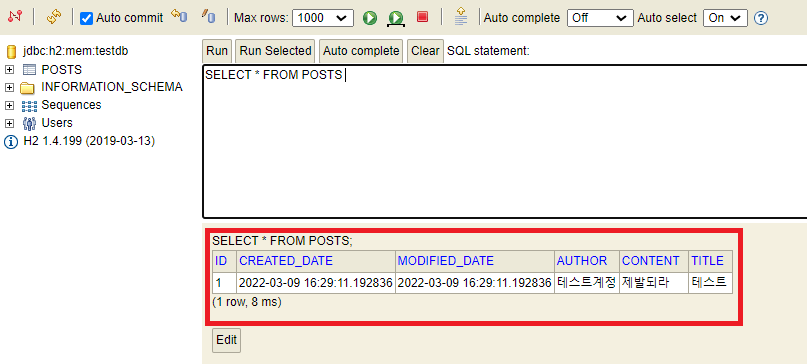 실제로 DB에 데이터가 등록되었는지 확인해보자