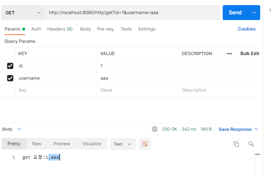 return "get 요청:" + id +"," +username;