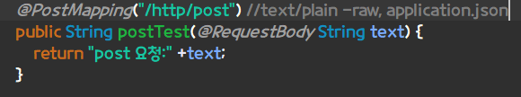 @PostMapping("/http/post") //text/plain -raw, application.json