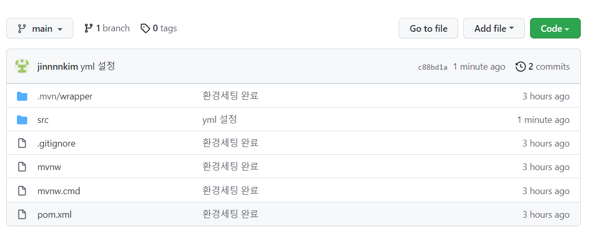 git push origin main : 메인 브랜치에 파일 업로드