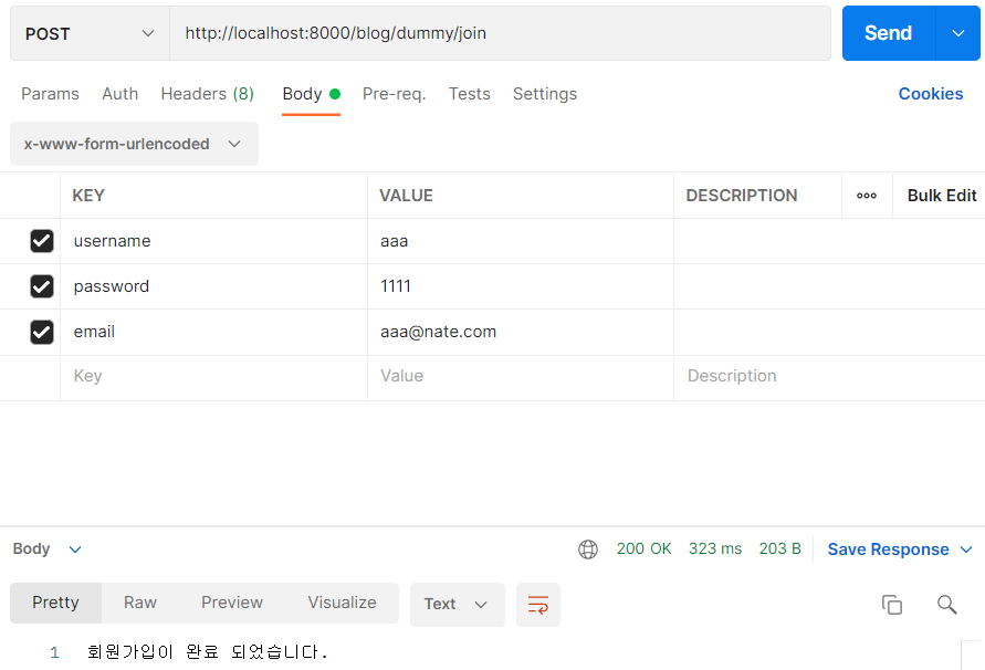 //http의 body에 username, password, email 데이터를 가지고 요청함