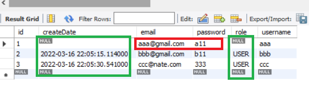- - 엔티티를 만들 때 변수명에 언더스코어를 붙여준다. 예) createDate -> create_date