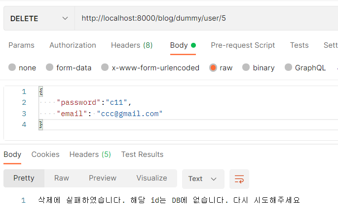 - if문을 사용하여 등록 Id가 없을 경우 "삭제 실패"