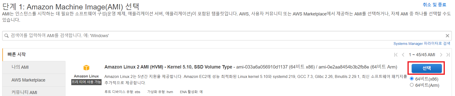 Amazon Marchine Image의 약자로 아마존 머신(이미지)을 선택하는 것