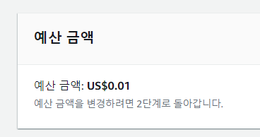 예산 금액 설정하는 칸에 최소 금액 0.01 달러 입력!