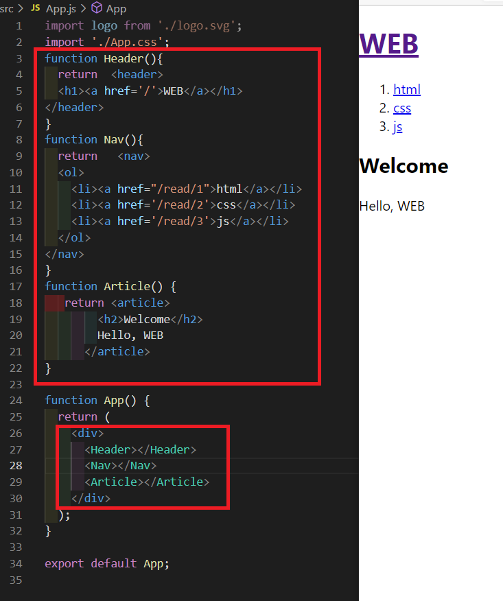 컴포넌트를 사용하여 코드를 간략화할 수 있다.