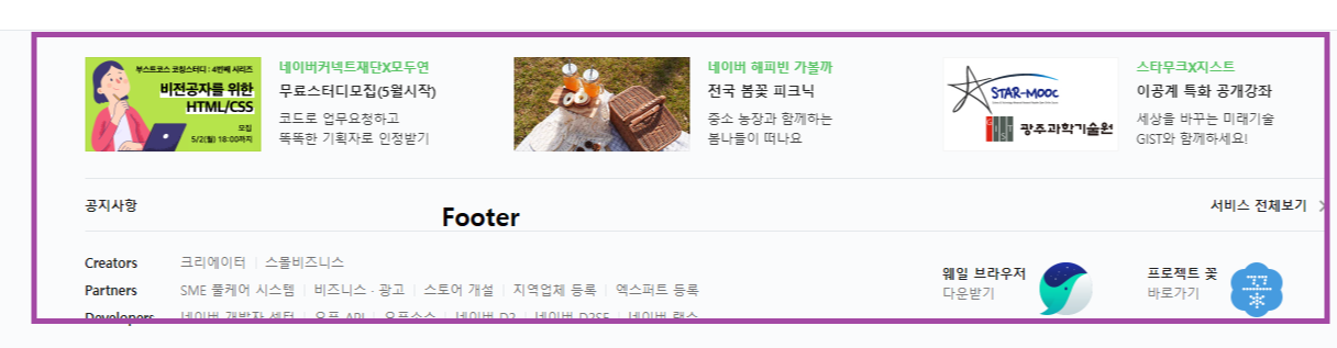 - footer : 웹 페이지 하단
